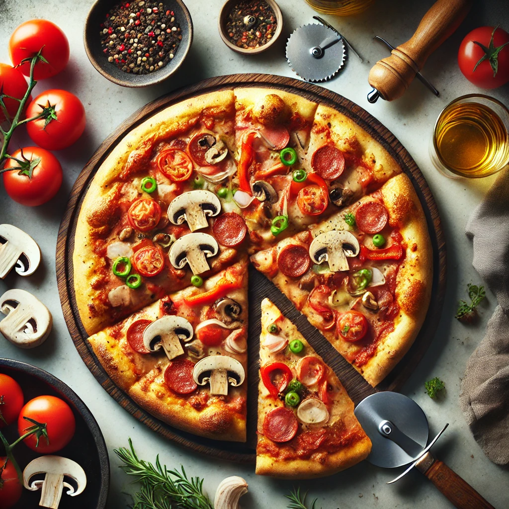 - Fresh toppings of choice (pepperoni, mushrooms, onions, bell peppers, basil, etc.)
